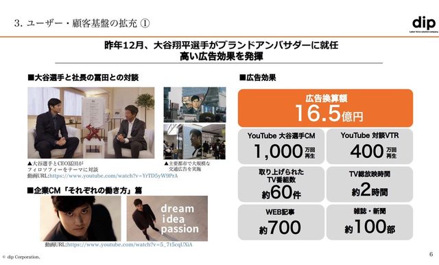 去年的12/26 大谷幫日本的人力徵才公司,DIP Corporation 進行代言