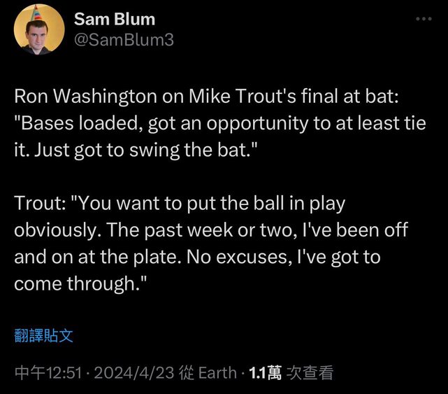 → polanco: 看鱒魚自己也是說會有一些起伏 但不想找藉口 04/23 13:39