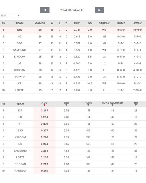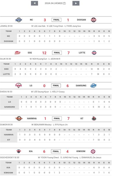標題[數據] 韓職4/24結果(崔廷HR、鄭海英SV新記錄)