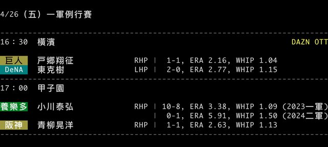 標題[情報] NPB 4/26 預告先發