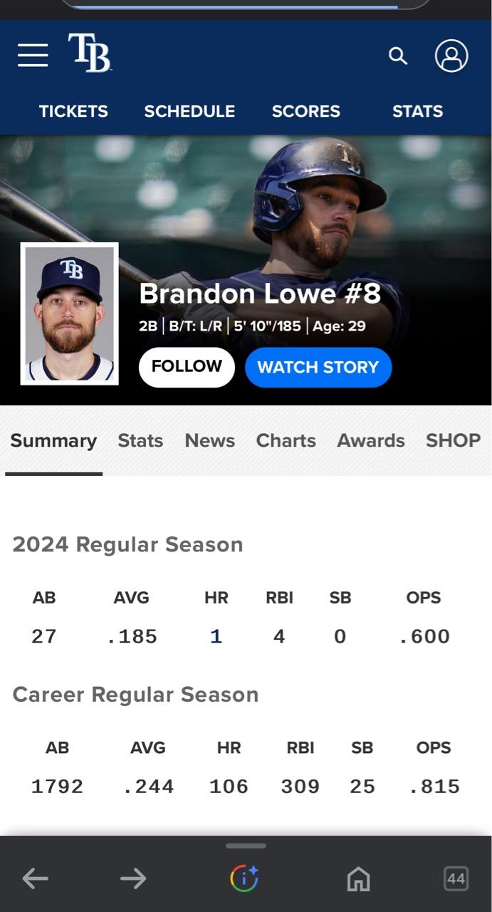 推 HWtseng: 二壘目前看起來有機會,但是Lowe受傷大概休養4-6週,是 04/27 01:08