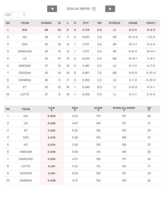 /8/29 @ 蠶室 VS. LG~2024/4/26 @ 高尺 VS. 三星)。