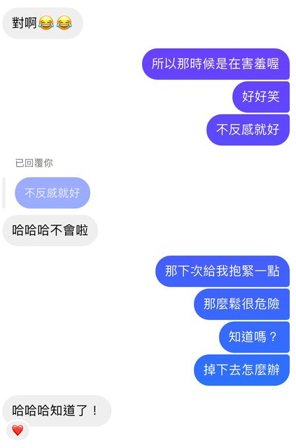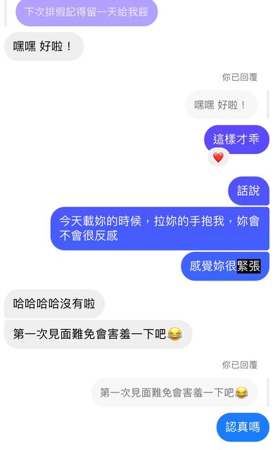 後她就開始每天早安、午安、晚安問候,然後要去哪裡主動跟我報備。