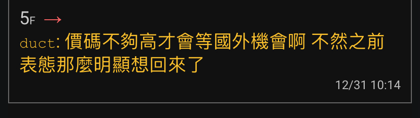 → duct: XD夠多夠多 可惜還是出去了 問題不就在幾年約了? 02/20 23:21