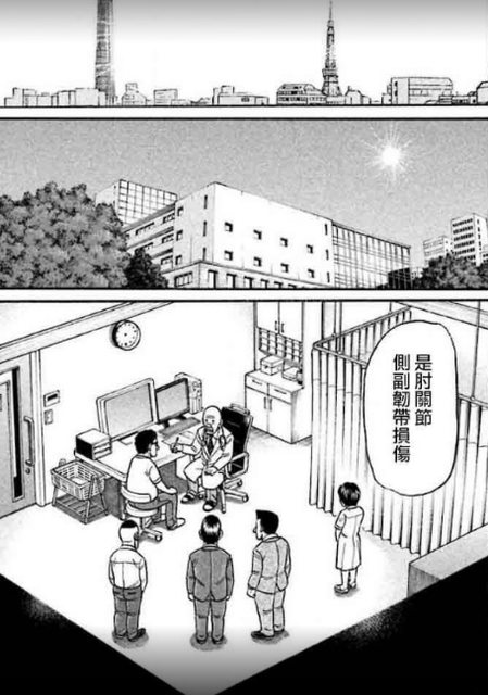 漫畫錢進球場有一幕 主角手肘受傷
