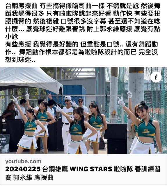 → cpcpao: 台灣舞蹈動作簡單就是為了讓球迷跟著跳,有參與感 02/26 00:57