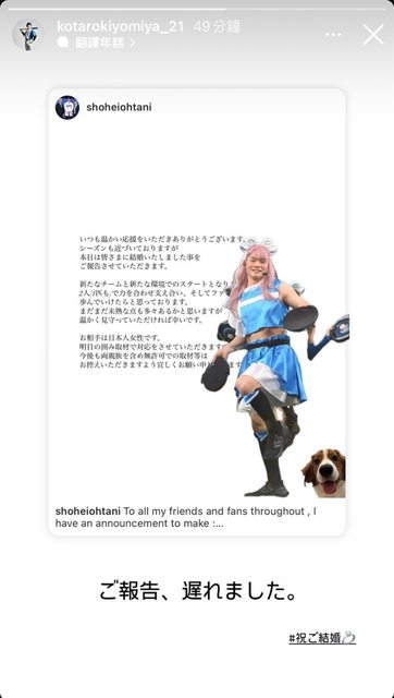 「我想和夫人說,雖然很辛苦,但是請多多照顧翔平,真的祝賀你們」