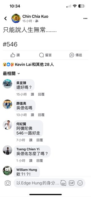→ A0936104638: 何紀賢留言一路好走? 03/01 01:56