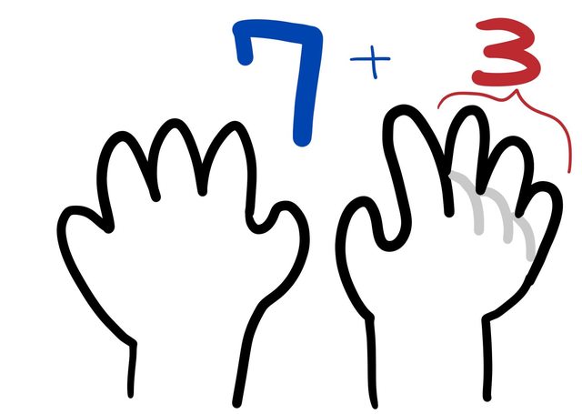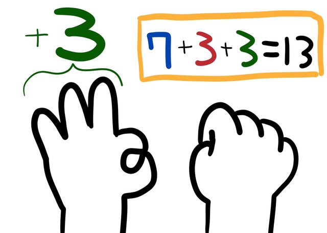 因為要加六,但手指只剩三根,就先把三根伸出來