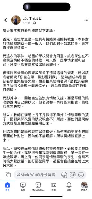 → mayko: 老師請他們體諒我的孩子.對方小孩卻說..特殊生有甚麼了不起 03/04 09:56
