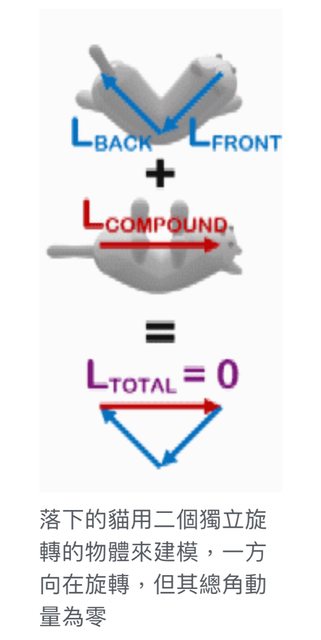不然就會有淨角動量產生,但事實是:貓可以翻身四腳著地