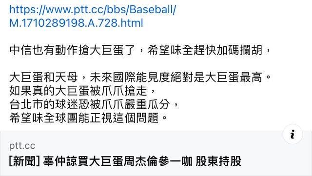 推 bill321: 味全高層也不是笨蛋,一定都評估過搶大巨蛋有多少效益 03/13 11:04