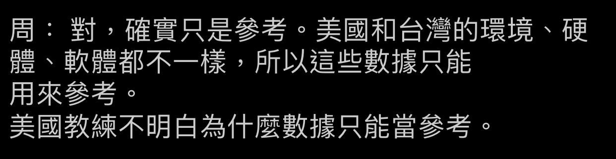 推 gandalflee: 台灣的硬體軟體算出來的數據只能用來參考 是不是不夠 09/30 00:47