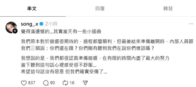 我們原本對於徵選很期待的,過程都蠻順利,但最後結束準備離開時,內部人員跟我們三