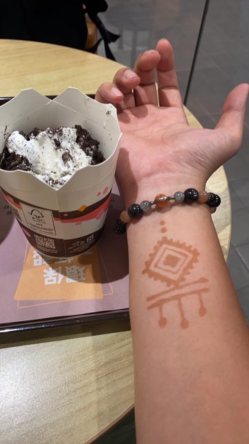 (佛光山主題日外面攤位的人體彩繪體驗,這個圖騰代表「平衡」,結果昨天是要考驗吱迷