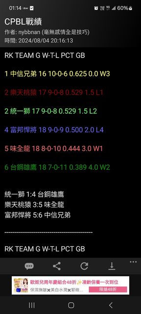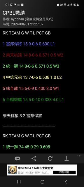 推 realbezhemei: 雖然說第四名 但跟龍頭只差一場…10/12 01:38