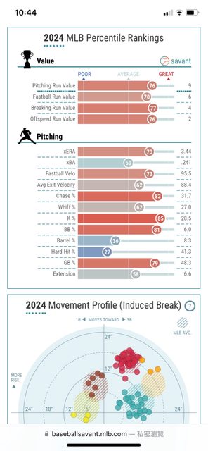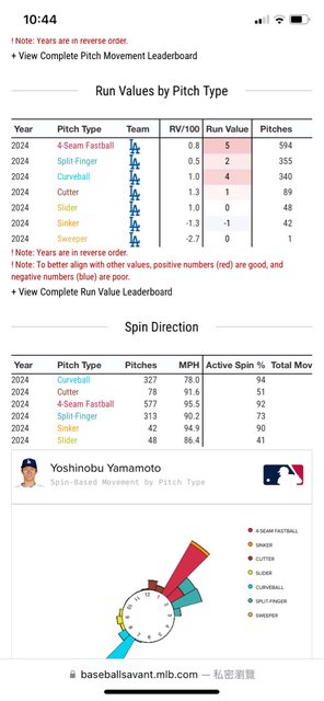 → Kawow: 而且87%投手 速球被安打率 本來就會比其他球種高很多 10/12 11:04