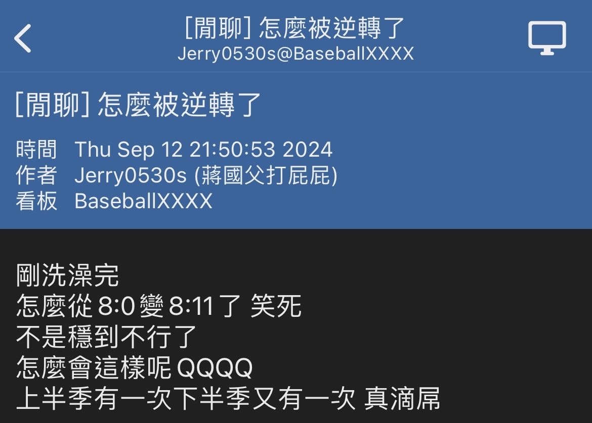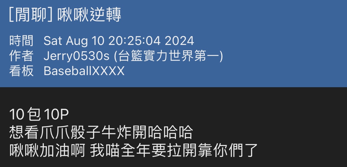 → joulin: 味全 樂天 兄弟 富邦 尤其後兩隊 都嘛被酸假的 10/13 13:09