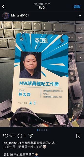 結果他自己的IG就發了自己的識別證
