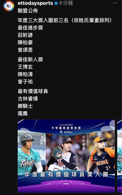 → james91718: 進步獎應該就柏豪的吧,魚住雖然也進步很多但柏豪拿 10/21 15:41