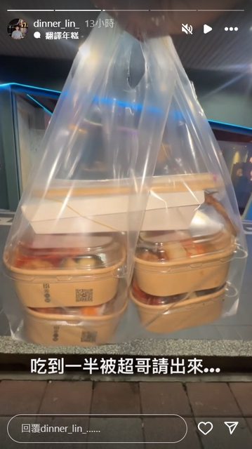 出去,只好將沒能吃完的食物打包帶走。另外,低能林po出一張用餐時的動態,只見他與