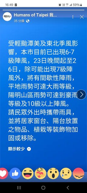 標題[閒聊] 北市府--台北已出現6~7級陣風