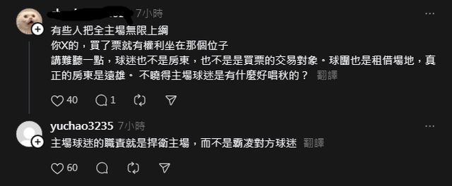 ,就只是聽他在碎唸,每個人都有權利坐他買的位子,也有權利幫喜歡的球隊應援,他沒