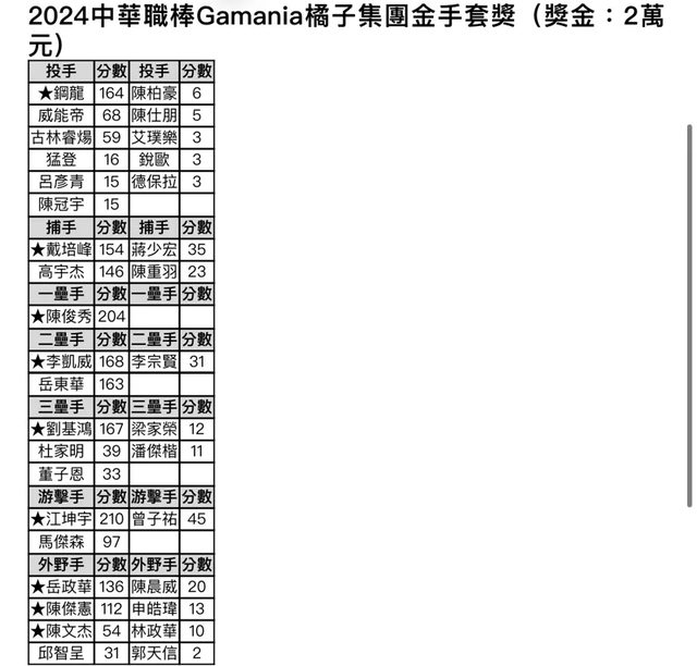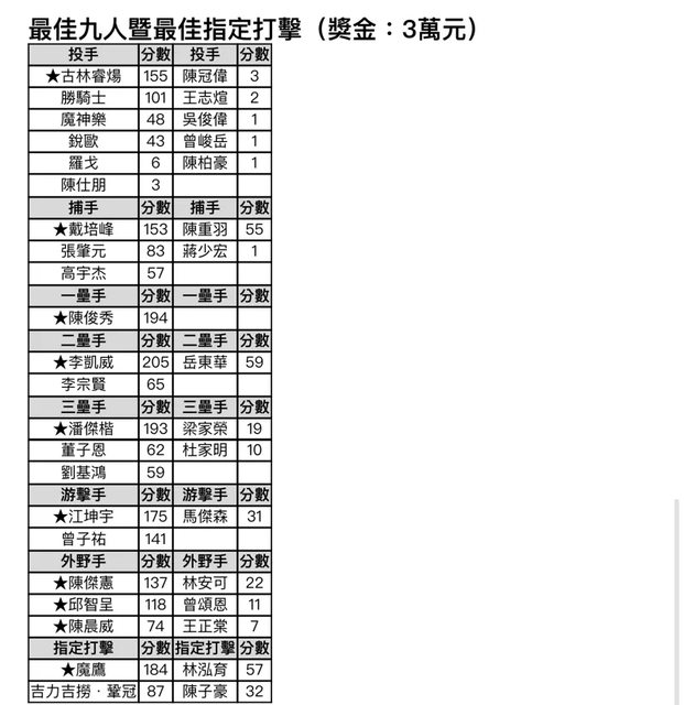 推 greatcat: 想不出金手套跟最佳十人獎金為何會不同的理由 10/25 12:47