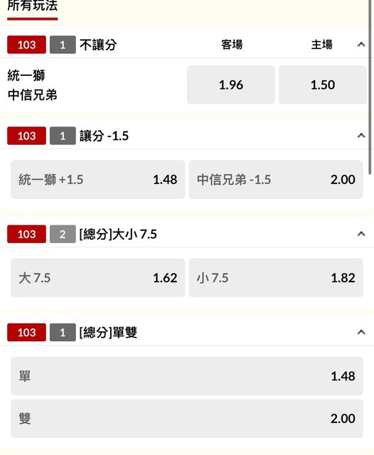 推 LatteCat5566: 中信讓1.5 這2.0賠率不錯 壓一萬賺一萬 10/25 14:43