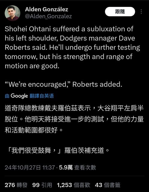 標題[閒聊] 蘿蔔更新大谷傷勢