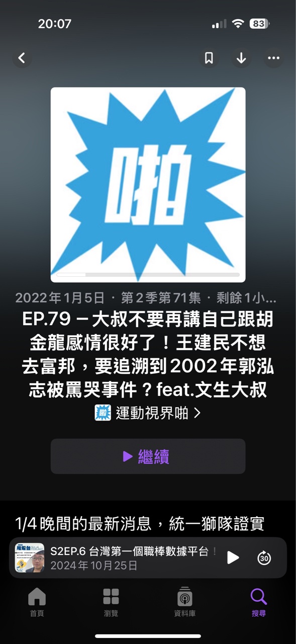 推 agantw: 文生大叔有自己的Podcast頻道呀,但討論度不高 10/27 21:04