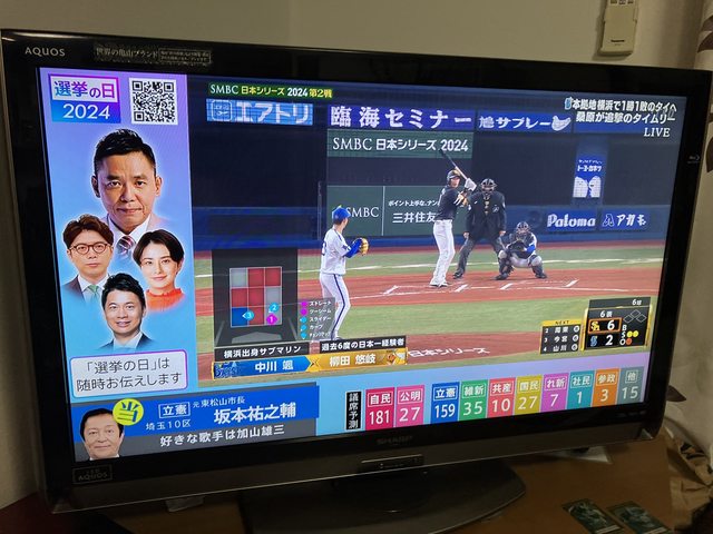 : 在報導期間,畫面會一邊轉播開票、一邊轉播球賽