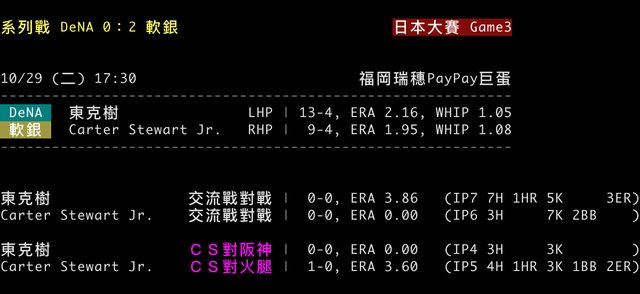 系列戰 DeNA 0:2 軟銀 日本大賽 Game3