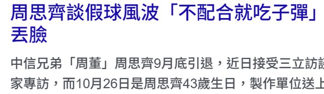 標題[閒聊] 周思齊:被威脅打假球 不配合等著吃子彈