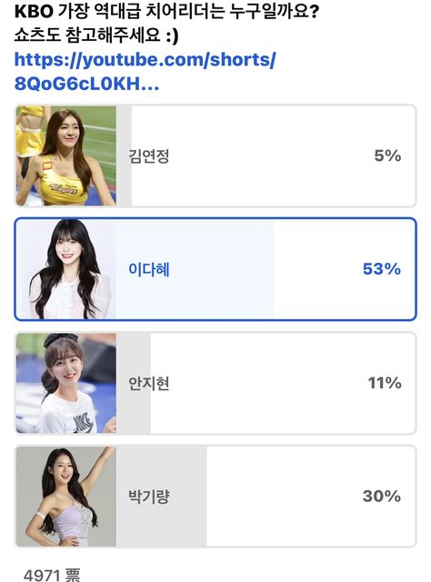 有韓國人做了一系列有關韓國啦啦隊的投票