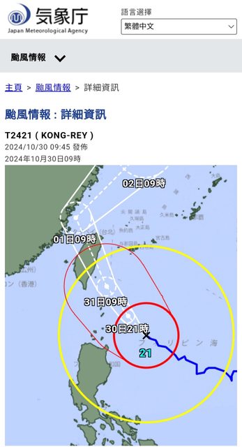→ hunng5: 不一定,這是強颱,應該還能維持輕度-中颱下限,只是出海 10/30 10:36