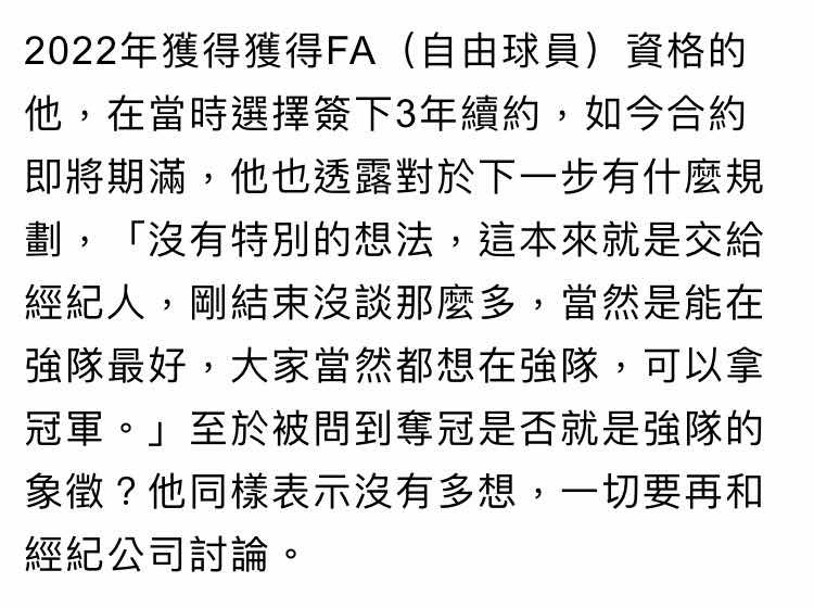 → Sfltnarud: 他能留下來 不是他不要提FA 10/30 16:19