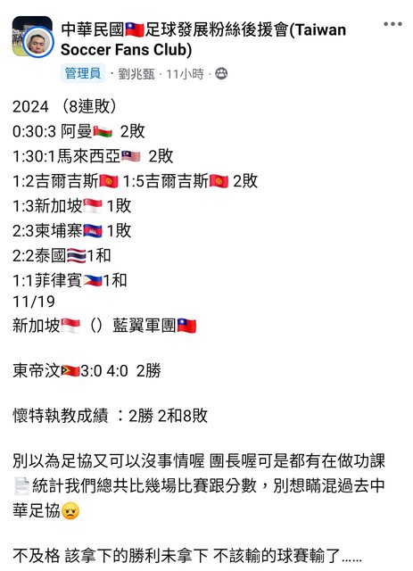 講戰績就更好笑了,2024年男足成人隊一勝難求