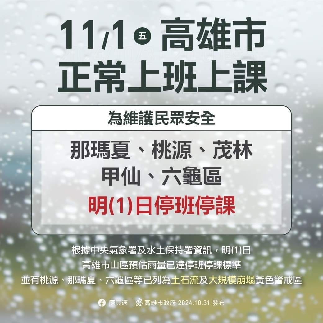 推 swps40309: 高雄除了山區也都要上班了 10/31 20:12