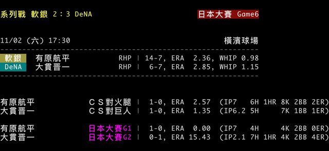 標題[分享] NPB 日本大賽 G6 預告先發