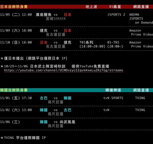 標題[分享] 12強 台日韓熱身賽 賽程/轉播平台