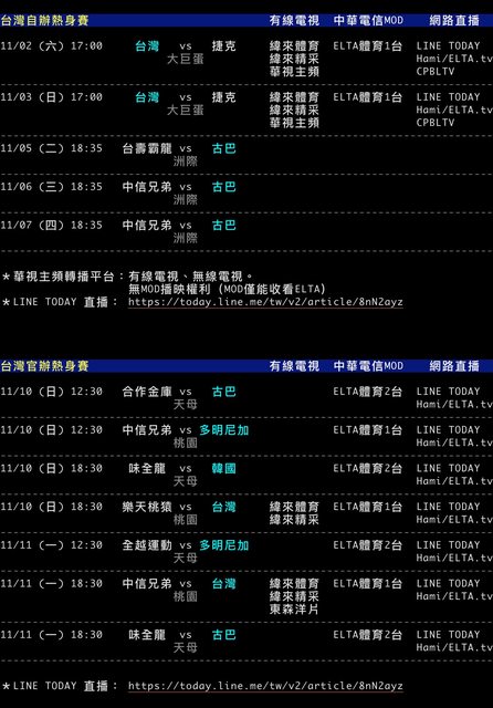 台灣 vs 捷克 緯來體育 ELTA體育1台 LINE TODAY