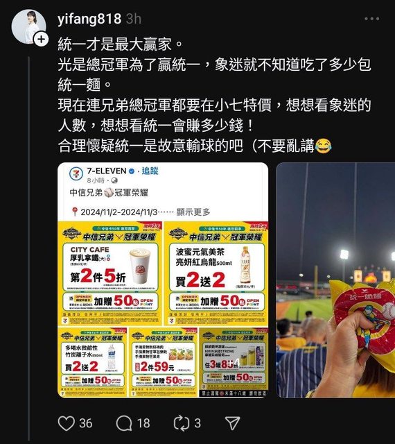 推 iceo1120: 笑死她直接寫統一故意輸球欸 11/02 13:04