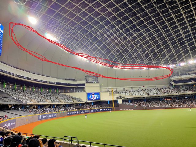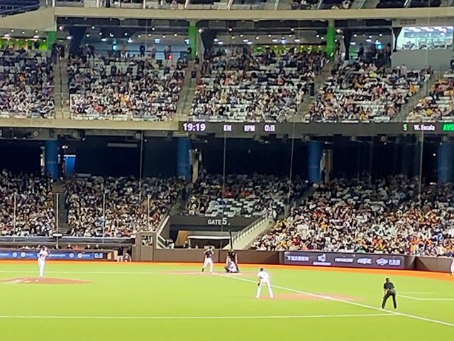 這次的座位在左外野,全壘打標竿附近(紅色星星標示)。又是邊緣人的一晚。