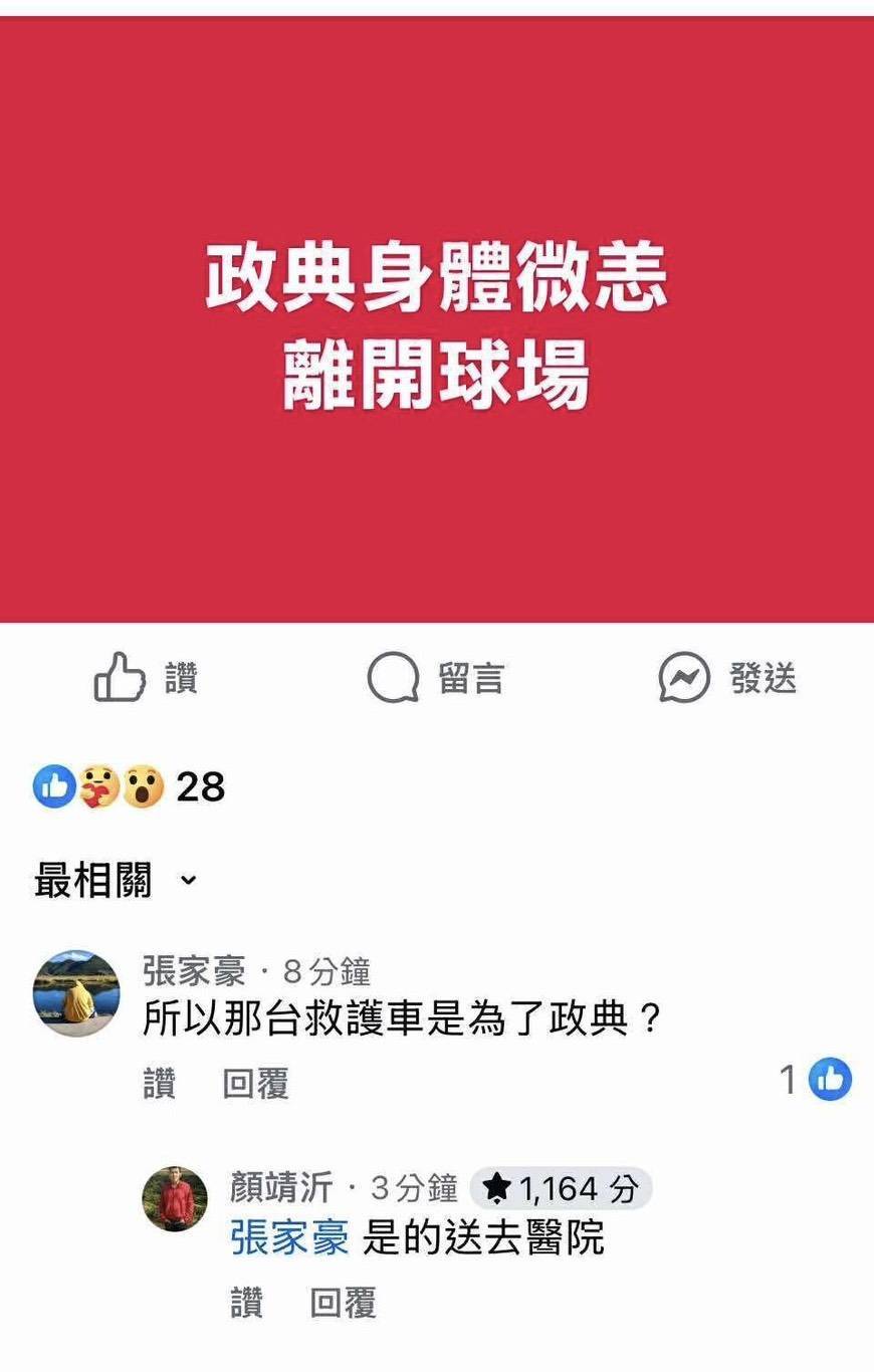 脆上有人說上救護車的就是他 聽說是身體微恙