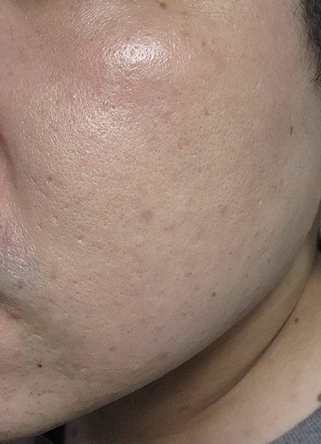 我自己知道是痘疤很多,蠻容易長痘痘的