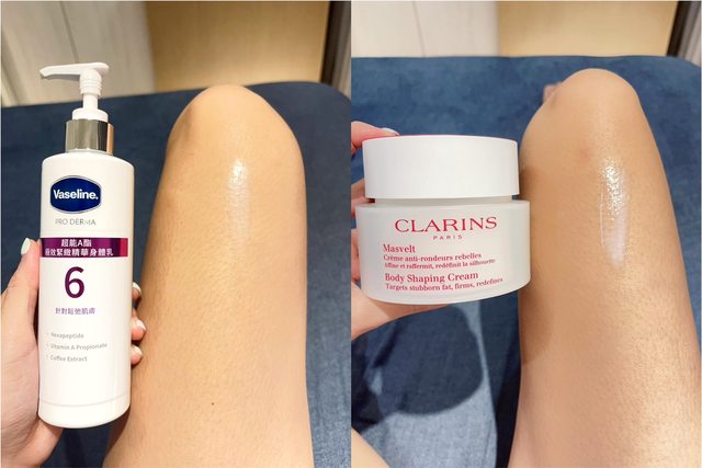 平常洗完澡我習慣用克蘭詩的比基尼瘦身霜按摩舒緩小腿+抬腿30分鐘,最近看凡士林也