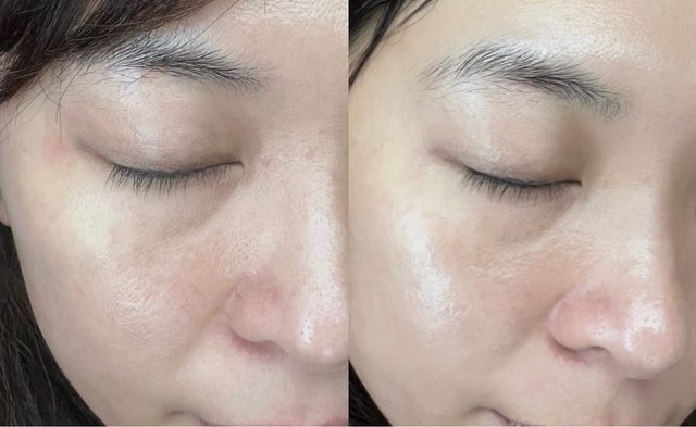 兩頰的毛孔、眼頭的痘疤還有鼻翼的粉刺還是有改善不少