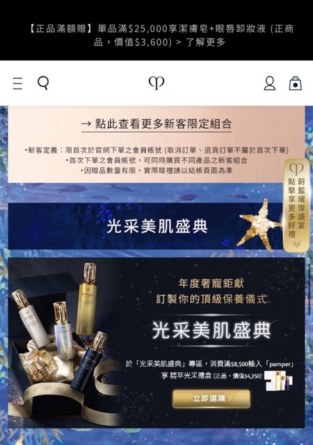 有看到一區是光采美肌盛典,任選滿8500會送一組精萃光采禮盒