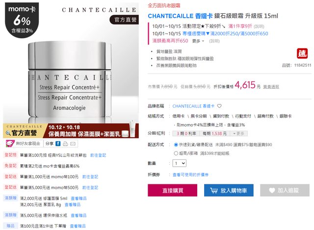 標題[情報] MOMO香緹卡鑽石眼霜現折三千多